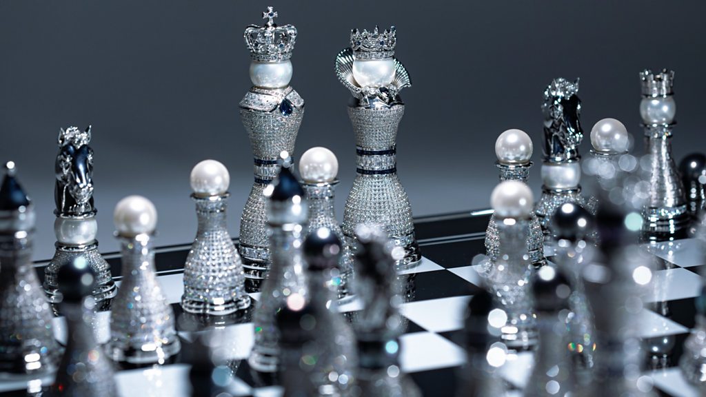 The ancient game of chess is one steeped in tradition, with a history dating back centuries. The classical form of chess is still prominent on the global stage, but streaming and online platforms have seen the game now increasingly being played online – so much so that it’s set to make its debut at the Esports World Cup later this year. Not by the Playbook’s Katie Smith finds out more about the stories behind this historic board game – from a world record holder to the designer of one of the world’s most valuable and lavish chess sets. Nigeria's Tunde Onakoya shares his story from learning to play in a barber shop to setting the world record for the longest chess match last month. He played against Shawn Martinez for 64 hours in New York’s Times Square and he’s wanting to help children in Africa with a similar story to his. Jules Gambit was a junior chess champion in her youth but found that she was struggling to make friends, so made the switch to ballet. She’s now back involved in chess and is now a rising star in the streaming community. What brought her back to chess and is streaming the future of the sport? Anthony Mathurin is no stranger to strategic games as a chess coach and a contestant on The Traitors, but is he staying faithful to the classical form of chess? Also meet the designer of one of the most valuable and lavish chess sets in the world. The Pearl Royale is estimated to cost $4 million – but what’s the story behind the design? Australian jewellery artist Colin Burn reveals all. Listen to Not by the Playbook on the BBC World Service every Saturday at 0900 GMT, or find it as a podcast wherever you get your BBC podcasts. Get in touch with us via email and use the hashtag #NBTP on social media. Photo: The Pearl Royale chess set which is made of diamonds, blue sapphires and South Sea pearls. Credit: Aaron McPolin/Colin Burn)