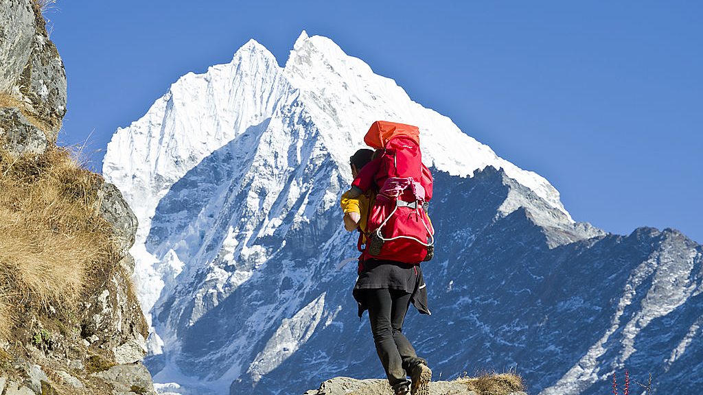 We meet the ultra-marathon runner with a love of breaking records and taboos. As side from breaking the two treadmill World Record, Sophie Power has completed some of the toughest, longest and energy sapping races. It was whilst doing one of the world's most famous, Ultra-Trail du Mont-Blanc that a picture of her breastfeeding her second child went viral. It raised all sorts of questions about the lack of equity between male and female competitors and forced the sport to rethink its attitude to women Life in the mountains is both a dazzling display of nature with a twist of constant danger. Free ride skier Kim Vinet spent many years competing and then more than a decade guiding others on and around the pristine and untouched snow of British Columbia. She explains the dramatic views and exhilaration of skiing these untouched paths, and the difficulty of loss all too often experienced in mountain communities. Kim is also part of the EcoAthletes collective, a non-profit that inspires and coaches athletes to lead climate action. Emma Pooley enjoyed cycling up mountains so much, she eventually moved to Switzerland! The Olympic medallist in the Beijing time trial is now a triathlete and she's being powered by her own recipes! Having looked at what was available and how it didn't meet her needs, Emma has developed more than 50 recipes for a new cookbook for aspiring and actual athletes attempting to climb their own mountains In 2013, Arunima Sinha became the first woman amputee to climb Mount Everest - just two years after suffering an horrific accident during an armed robbery on a train in the north of India. The accident robbed Arunima of a promising career in volleyball, but she was determined to prove to herself that she could still do anything. Photo: A young mother carrying her little child in a child carrier rucksack on her back. Kangtega Mountain can be seen in the background. (CREDIT: Frank Bienewald/LightRocket via Getty Images)