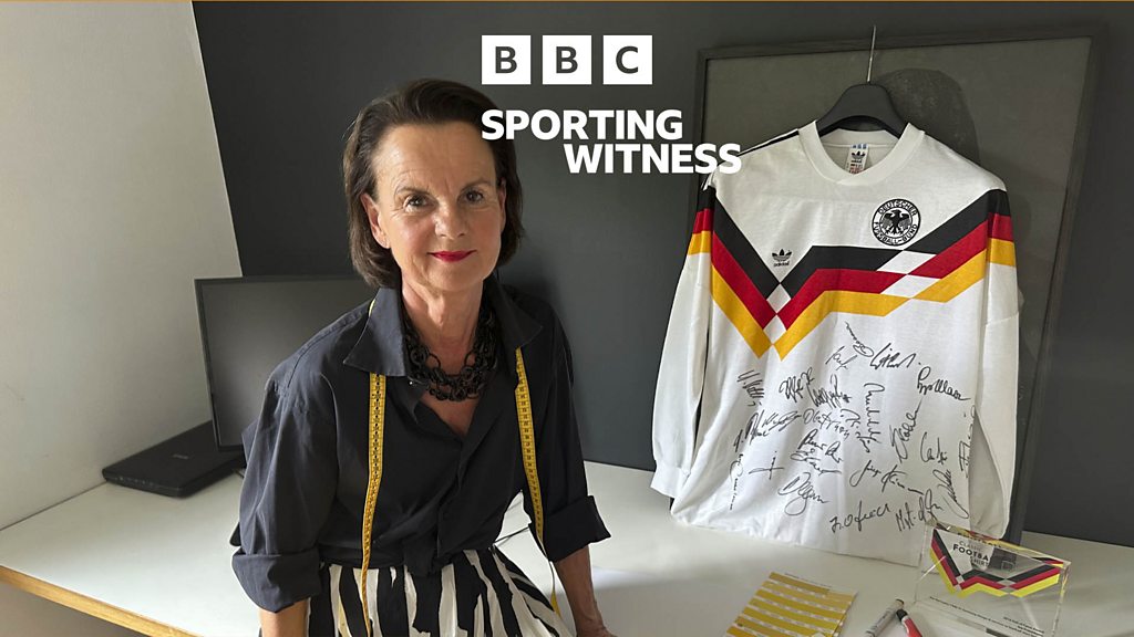 In July 1990, West Germany won the World Cup for the third time, beating Argentina 1-0 in Rome. The shirt the victorious players were wearing that night has become a design classic and is now one of the most sought-after by classic kit collectors. With its distinctive black, red and gold zigzag across the chest, West Germany’s 1990 shirt was a game-changer in the world of football kits, helping to usher in a new era of bold designs. Guy Kilty speaks to the shirt’s designer, Ina Franzmann, about how she created the famous kit. Eye-witness accounts brought to life by archive and testimony. Sporting Witness is for those fascinated by sporting history. We take you to the events that have shaped the sports world through the eyes of the people who were there. For nine minutes, you become a fan in the stands as we take you back in time to examine memorable victories and agonising defeats from all over the world. You’ll hear from people who have achieved sporting immortality, or those who were there as incredible sporting moments unfolded. Recent episodes explore the forgotten football Women’s World Cup, the plasterer who fought a boxing legend, international football’s biggest ever beating and the man who swam the Amazon river. We look at the lives of some of the most famous F1 drivers, tennis players and athletes as well as people who’ve had ground-breaking impact in their chosen sporting field, including: the most decorated Paralympian, the woman who was the number 1 squash player in the world for nine years, and the first figure skater to wear a hijab. You can learn all about fascinating and surprising stories, such as the tennis player who escaped the Nazis, how a man finally beat a horse in a race, and how the FIFA computer game was created. (Photo: Ina Franzman with the 1990 West German shirt she designed, signed by the team. Credit: Ann-Sophie Lang)