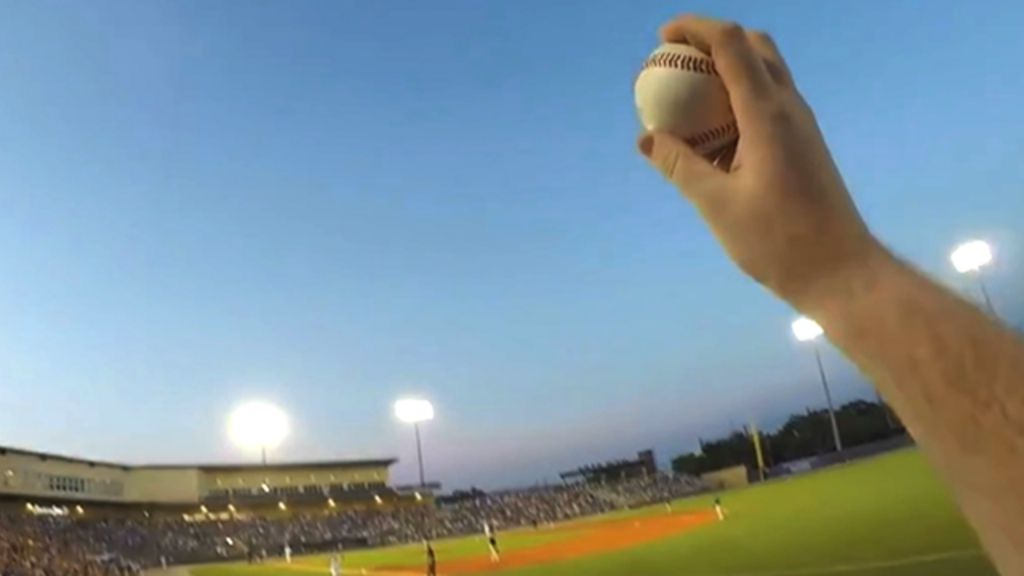 Baseball fan Micah Graves makes an amazing crowd catch whilst watching minor league side Biloxi Shuckers.
