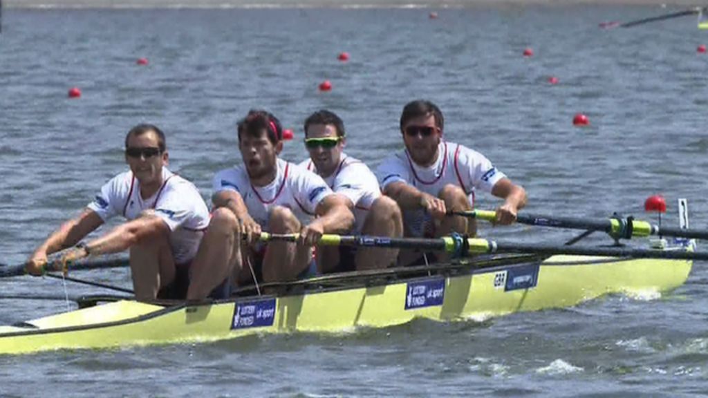 Team GB's men's four win gold ahead of Greece and Belarus at the European Rowing Championships in Poznan.