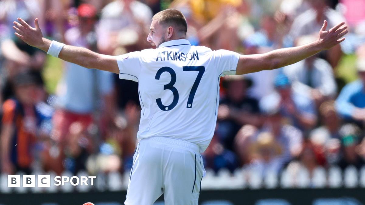 Gus Atkinson took the 15th Test hat-trick by an England men's bowler to rattle through the New Zealand tail on the second day of the second Test in Wellington.