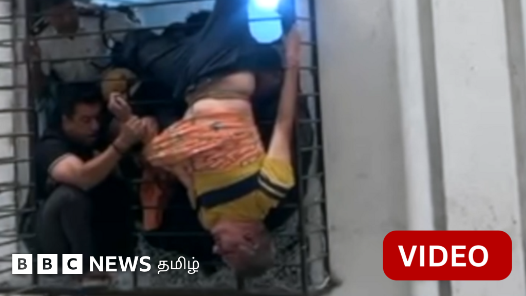 ஆபத்தான நிலையில் இருந்த அவரை கண்ட அக்கம் பக்கத்தினர், தீயணைப்புத் துறைக்குத் தகவல் அளித்துள்ளனர்.