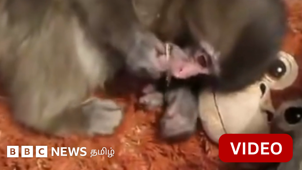 காணொளி: குரங்கு பொம்மையுடன் சுற்றித் திரியும் குட்டிக் குரங்கு