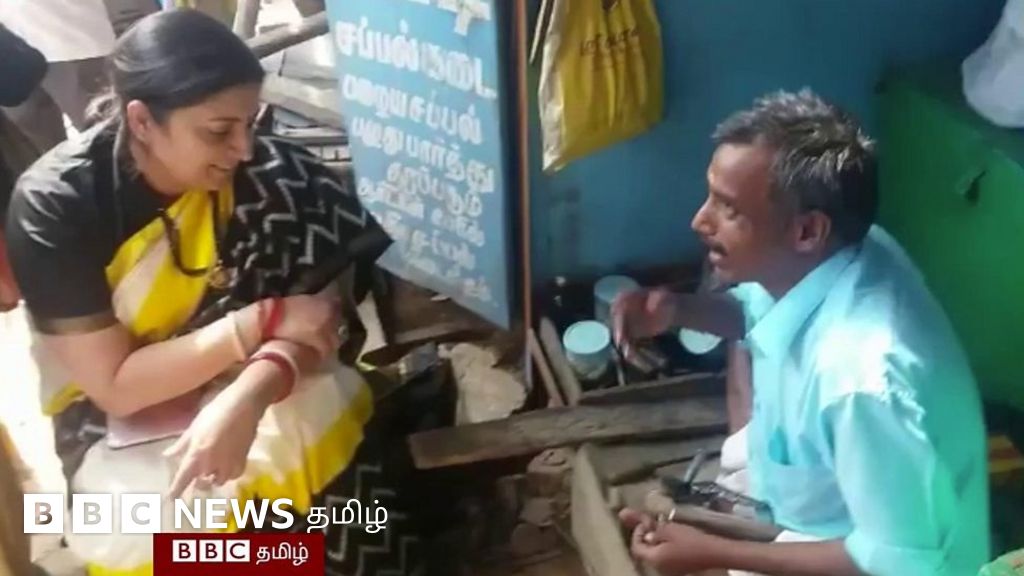 செருப்பு தைப்பவருக்கு 10 ரூபாய் கூலிக்கு 100 ரூபாய் தந்த ஸ்மிருதி இரானி (காணொளி)