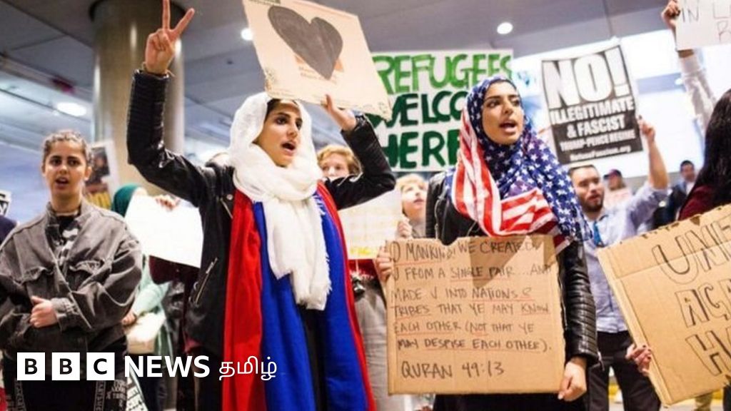 படக்குறிப்பு, அதிபரின் உத்தரவுக்கு எதிராக அமெரிக்க விமான நிலையங்களில் ஜனவரியில் பெருமளவில் எதிர்ப்புக்கள் கிளம்பின