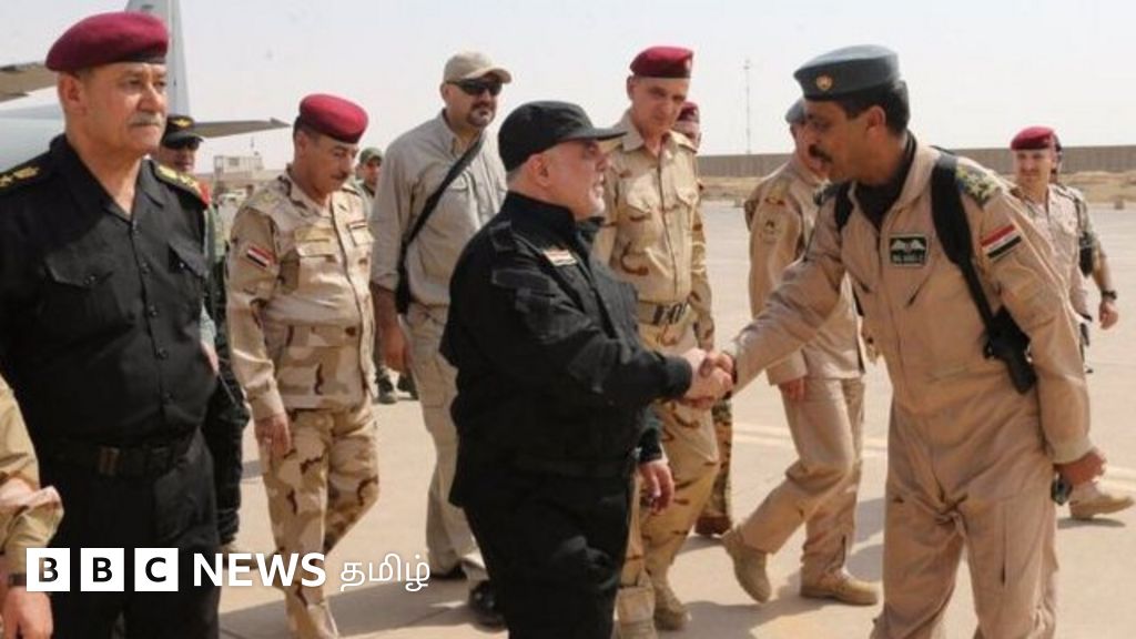 படக்குறிப்பு, வீரர்களுடன் கைகுலுக்கும் பிரதமர் ஹைதர் அல் அபாடி