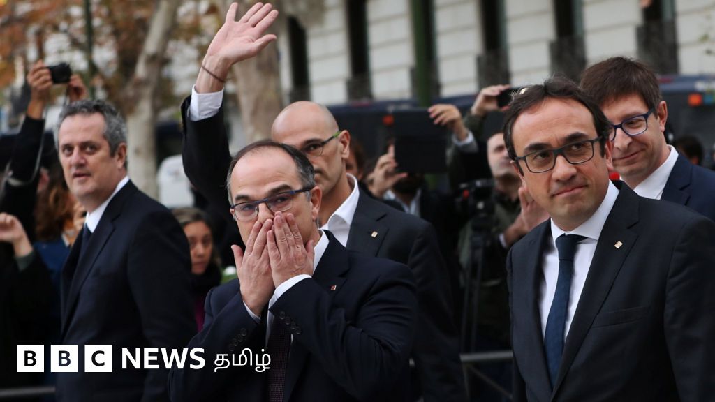 அக்டோபர் மாதம் நடத்தப்பட்ட தனி நாடாக சுதந்திரம் பெறுவதற்கான மக்கள் கருத்தறியும் வாக்கெடுப்புக்கு பிறகு, பதவி நீக்கப்பட்ட கேட்டலோனிய பிரதேச அரசின் உறுப்பினர்கள் ஒன்பது பேர், கிளர்ச்சி மற்றும் தேசத் துரோக குற்றச்சாட்டுக்களை எதிர்கொள்ள ஸ்பெயின் உயர்நீதி மன்றத்தில் ஆஜராகின்றனர். ஆனால், பதவி நீக்கப்பட்ட கேட்டலன் தலைவர் பூஜ்டிமோன் உள்ளிட்ட ஐந்து பேர் நீதிமன்றத்தில் ஆஜராகவில்லை.