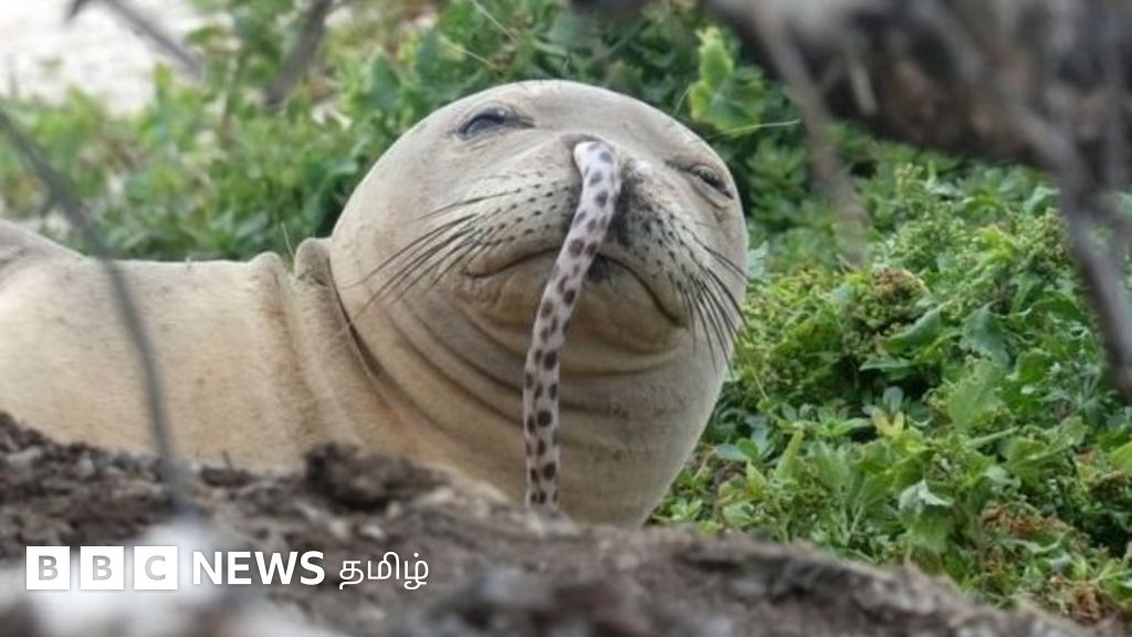 அழிவின் விளிம்பில் இருக்கும் ஹாவாயன் மான்க் சீல் என்று அழைக்கப்படும் நீர்நாயின் மூக்கில் பாம்பு போன்ற கடல் மீன் எப்படி வந்தது என்று ஆராய்ச்சியாளர்கள் யோசித்து வருகின்றனர்.