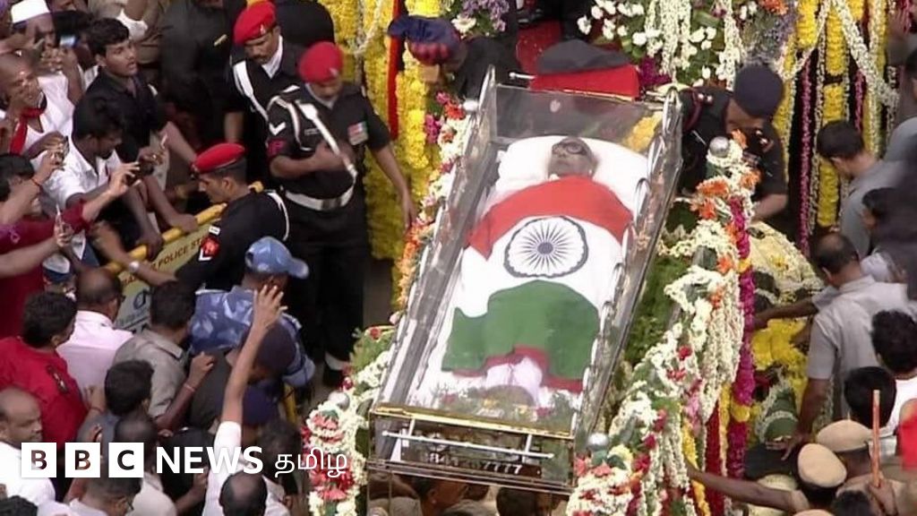 17.20: இறுதி ஊர்வலத்தில், ஸ்டாலின், தயாநிதி மாறன், மு.க.தமிழரசு, டி.ஆர்.பாலு உள்ளிட்ட பலர், இராணுவ வாகனத்தைவிட்டு இறங்கி நடந்து செல்கின்றனர்.