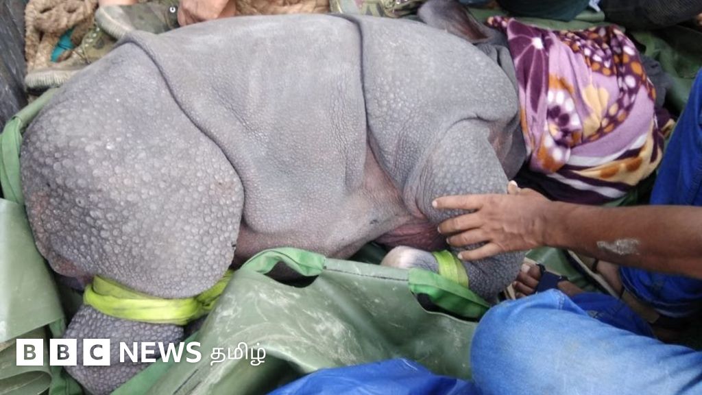 வெள்ளப்பெருக்கில் சிக்கி தாயை இழந்து தவித்துக் கொண்டிருந்த ஒற்றை காண்டாமிருகக் குட்டிகளை மீட்கப்பட்டுள்ளது .