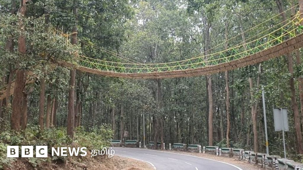 இந்தியாவின் மலைகள் நிறைந்த உத்தரகண்ட் மாநிலத்தில் உள்ள நைனிடால் வனப்பகுதி வளைவுச்சாலைகளில் வாகனங்களிடம் மிதிபடாமல் ஊர்வனங்கள் சாலையை கடக்க தொங்கு பாலம் அமைக்கப்பட்டிருக்கிறது.