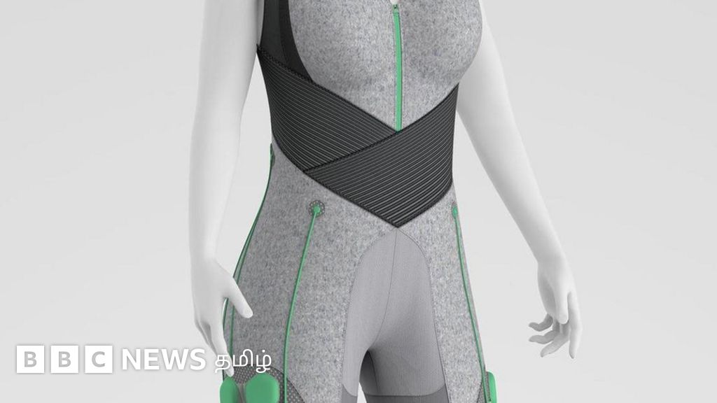 உடலின் அசைவுகளை கண்காணிக்கும் கணினியும் அதற்கான சென்சாரும் ஆடையுடன் இணைக்கப்பட்டுள்ளது.