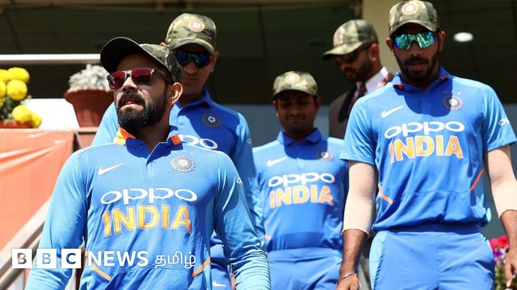 குறைந்தபட்சம் நாற்பது சி ஆர் பி எஃப் வீரர்கள் புல்வாமாவில் நடந்த தற்கொலை குண்டு தாக்குதலில் கொல்லப்பட்டதையடுத்து நாட்டின் படை வீரர்களுக்கு அஞ்சலி செலுத்தும் விதமாக ராணுவ தொப்பி அணிந்து விளையாடியதாக இந்தியா கூறியுள்ளது.