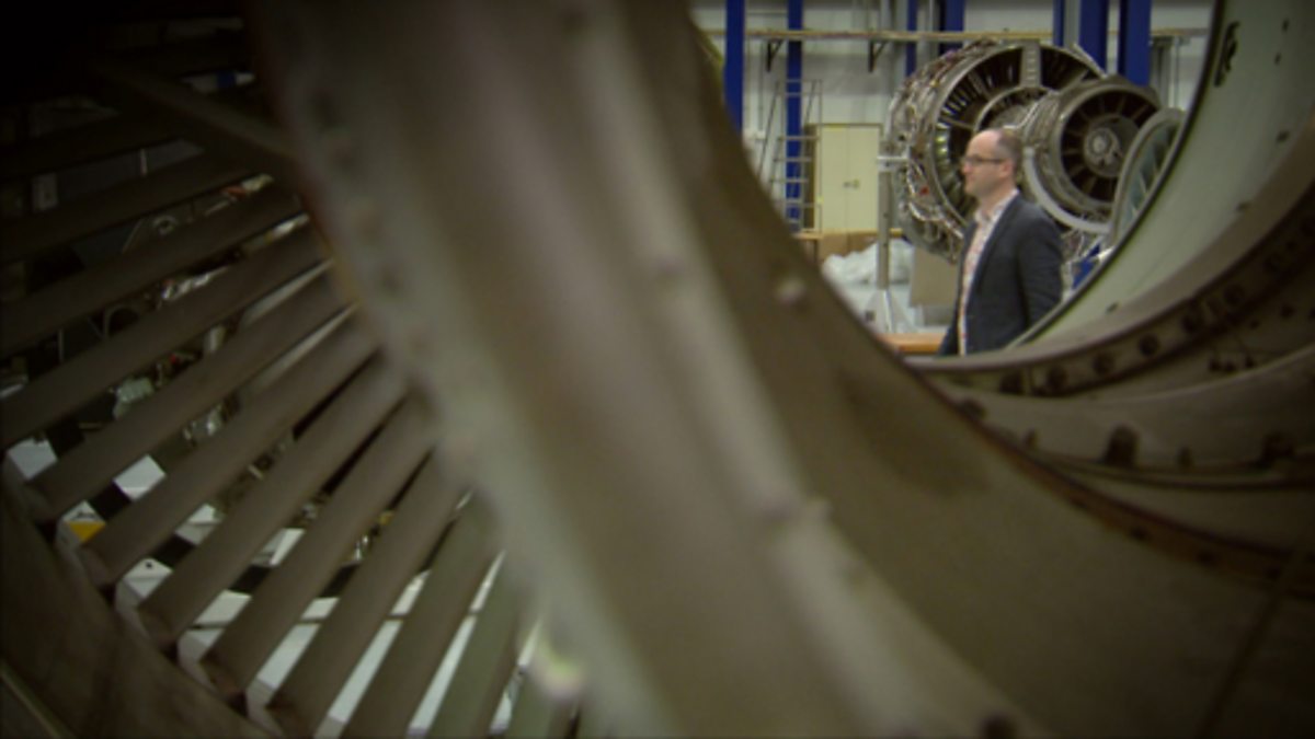 Mark Miodownik puts the properties of a superalloy to the test with a practical demonstration of the strength of a superalloy under high temperatures and how this metal is used inside a jet engine.