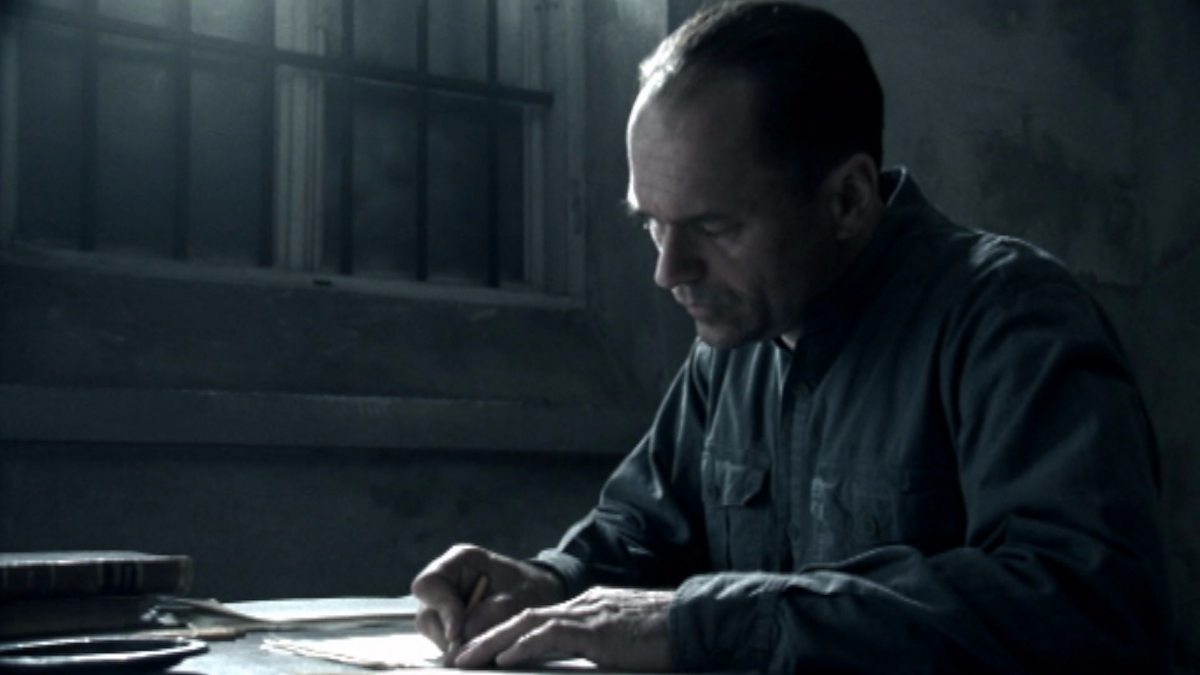 NARRATOR: Rudolph Hoss passed the time before his trial recording his experience of commandant of Auschwitz and his service in the SS. It's a remarkable document of great historical importance, offering us an insight into his mentality. He reveals how he watched women and children being taken to the early improvised gas chambers in cottages at Birkenau.