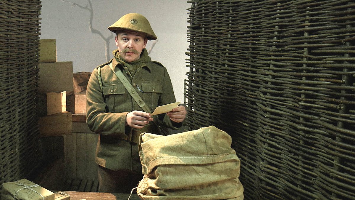 Photographs, newsreel and dramatic monologue show how the Post Office carried messages and parcels from home to British Tommies in the trenches.