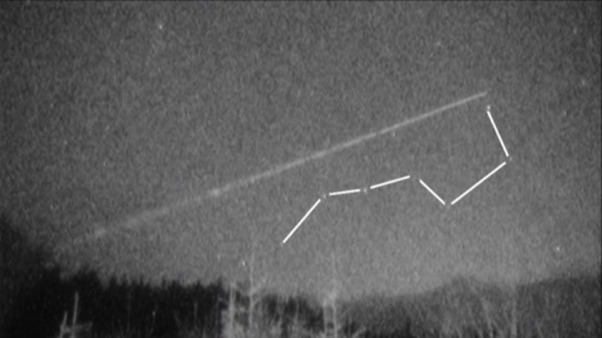 Okay, so there- there's the Plough. There's the Handle of the- of the Saucepan. And you see these two stars there? That's the pointer star. And you follow that right up… There's your North Star. [ WOMAN 2: Oh wow.] There's your Pole Star.