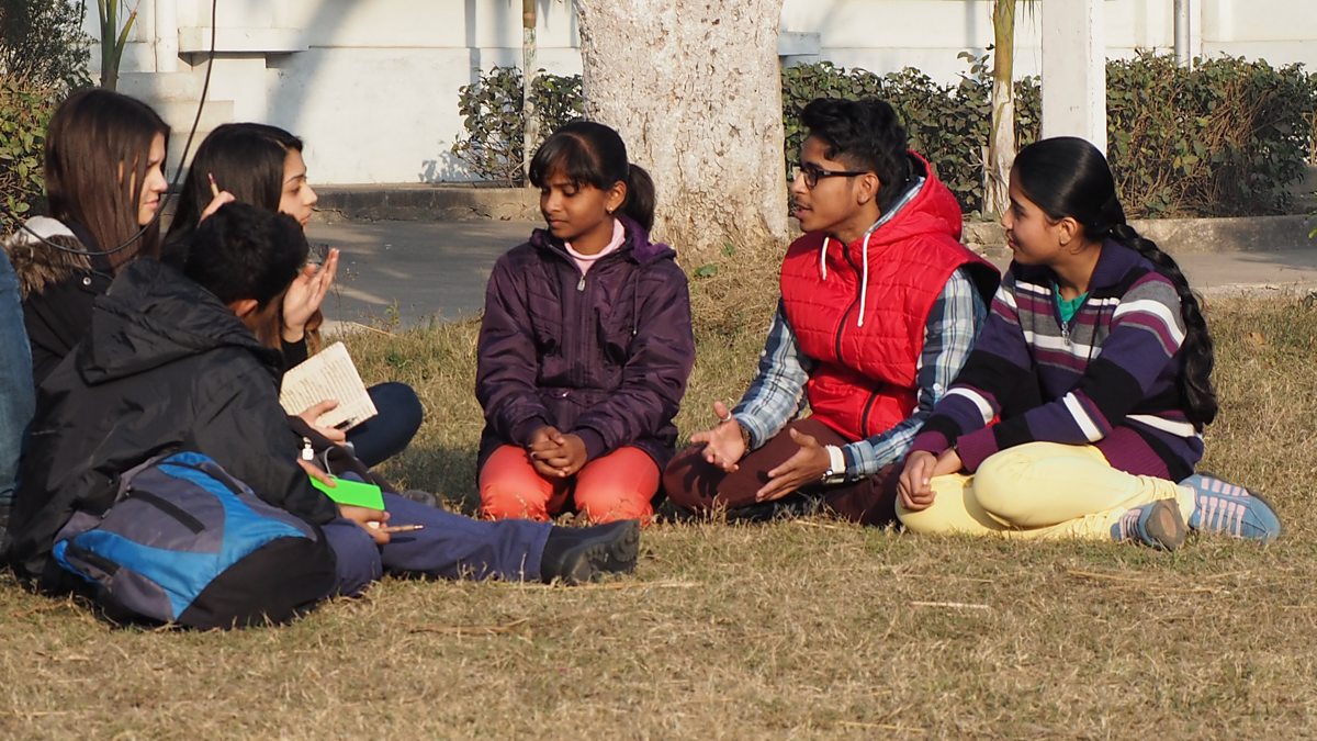 NARRATOR: India is a huge country, more than ten times the size of the UK. Patna is the country's 19th biggest city despite its population being larger than Manchester and Birmingham combined. To get their bearings, the three visitors are meeting a group of Indian students.