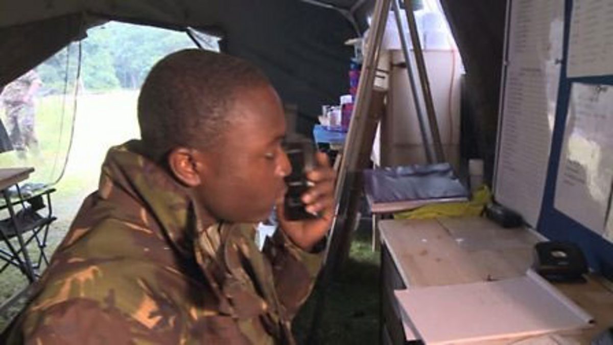 Members of Armed Forces: He's listening to orders being given over the radio.