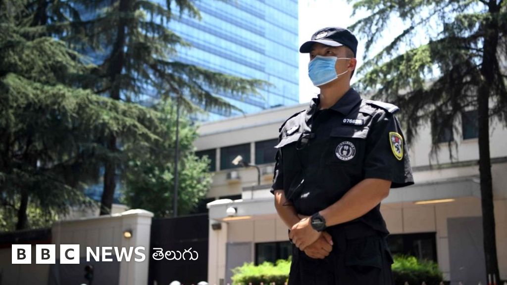 ఫొటో క్యాప్షన్, చెంగ్డూలో అమెరికన్ కాన్సులేట్ బయట ప్రజలను అదుపులో పెడుతున్న భద్రతా సిబ్బంది