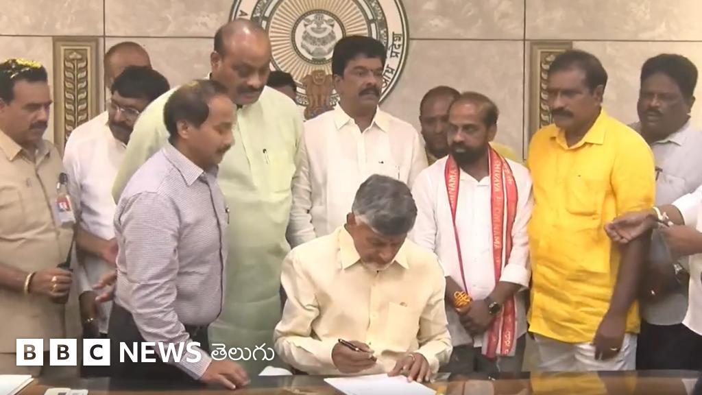 ఫొటో క్యాప్షన్, మెగా డీఎస్సీపై తొలి సంతకం చేస్తున్న చంద్రబాబు