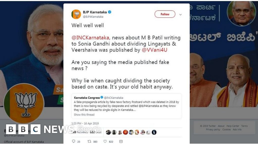 ''కర్నాటక కాంగ్రెస్ పార్టీకి చెందిన ఎంబీ పాటిల్... లింగాయత్, వీరశైవులను విడదీయడం గురించి సోనియా గాంధీకి రాసిన ఉత్తరాన్ని 'విజయవాణి' పత్రిక ప్రచురించింది. మీడియా తప్పుడు వార్తలను ప్రచురించిందని మీరు భావిస్తున్నారా?'' అన్నది బీజేపీ ట్వీట్ సారాంశం.