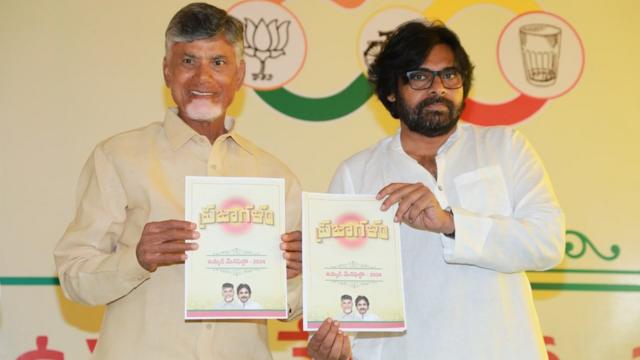 ఆంధ్రప్రదేశ్ అసెంబ్లీ ఎన్నికలకు టీడీపీ- జనసేన కూటమి తమ మేనిఫెస్టోను విడుదల చేసింది.