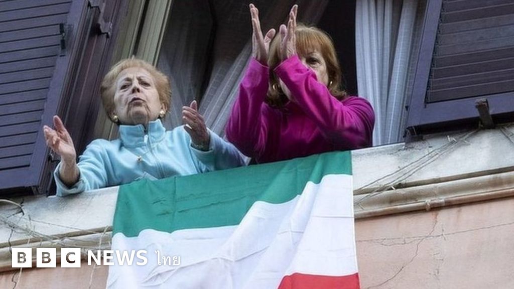 ที่อิตาลี ซึ่งมีคำสั่งให้คนกักตัวทั่วประเทศ คนออกมาร่วมร้องเพลงให้กำลังใจต่อกันและกันที่ระเบียง