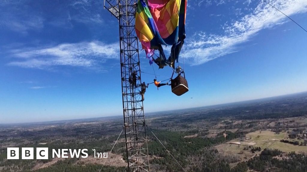 นาทีผู้โดยสารบอลลูนลมร้อนติดเสาสื่อสารสูง 280 เมตร