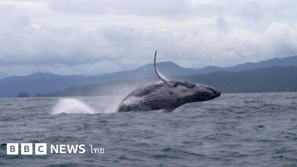คำบรรยายภาพ, ภาพถ่ายวาฬหลังค่อมนอกชายฝั่งประเทศโคลอมเบีย ในน่านน้ำมหาสมุทรกำลังอพยพย้ายถิ่นที่อยู่ครั้งใหญ่