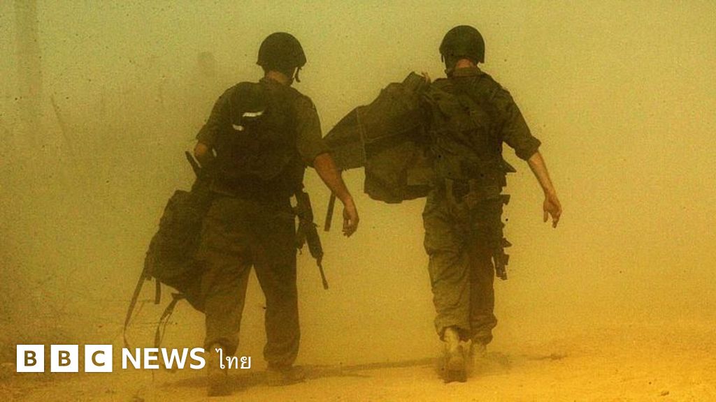 คำบรรยายภาพ, ทหารอิสราเอลกำลังเดินข้ามชายแดนกลับมาจากภารกิจในเลบานอนเมื่อปี 2006