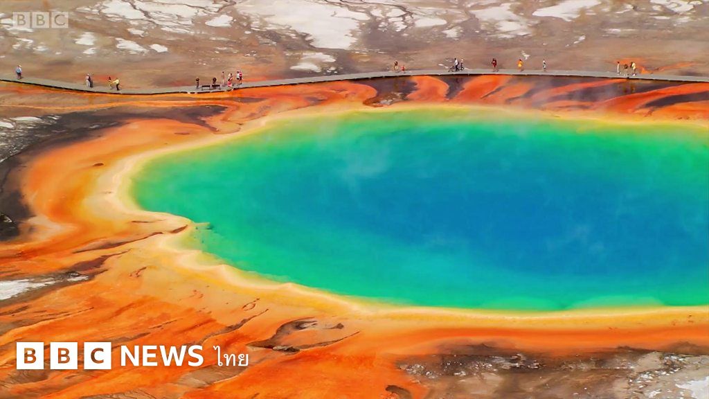 บ่อน้ำพุร้อนแกรนด์พรีสแมติค ที่อุทยานแห่งชาติเยลโลว์สโตน ในรัฐไวโอมิง สหรัฐฯ ซึ่งมีสีรุ้งที่เกิดจากจุลินทรีย์ที่อาศัยอยู่ในน้ำอุณหภูมิต่างกัน เชื่อกันว่าสิ่งมีชีวิตในโลกเริ่มก่อกำเนิดขึ้นจากสภาพแวดล้อมลักษณะคล้ายกันนี้