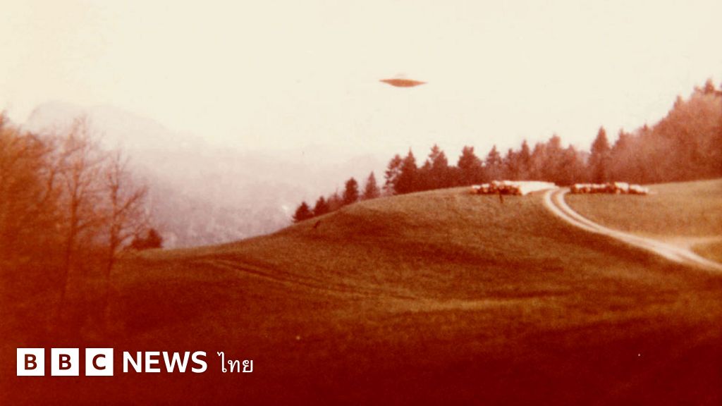 ภาพที่ถ่ายขึ้นเองอย่างไม่ชำนิชำนาญและดูเลือนรางนี้ แสดงให้เห็นวัตถุคล้ายโลหะลอยอยู่เหนือเขตเทือกเขาในชนบทของสวิตเซอร์แลนด์
