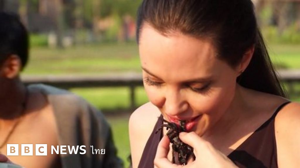 ดาราสาว แอนเจลินา โจลี ที่เดินทางไปประชาสัมพันธ์ภาพยนตร์เรื่อง First They killed my Father ในประเทศกัมพูชา ชวนลูก ๆ ของเธอ และ ยัลดา ฮาคิม ผู้สื่อข่าวบีบีซีให้ลิ้มลอง "แมลงทอด" เมนูเด็ดของประเทศนี้