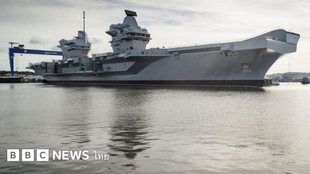 เรือบรรทุกเครื่องบินลำใหม่ของอังกฤษ เอชเอ็มเอส ควีนเอลิซาเบธ เตรียมออกสู่ทะเลเป็นครั้งแรกจากอู่ต่อเรือรอไซธ์ ในเมืองไฟฟ์ของสกอตแลนด์ เรือลำนี้เป็นเรือบรรทุกเครื่องบินลำใหญ่ที่สุดเท่าที่กองทัพเรืออังกฤษเคยสร้าง มีมูลค่ากว่า 3,000 ล้านปอนด์ หรือราว 130,000 ล้านบาท มีขนาด 65,000 ตัน