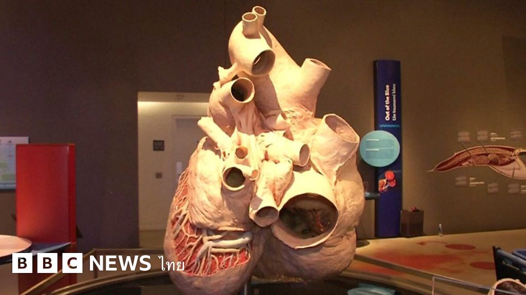 หัวใจที่ใหญ่ที่สุดเท่าที่เคยพบถูกนำมาจัดแสดงที่พิพิธภัณฑ์รอยัลออนแทรีโอในนครโตรอนโตของแคนาดา