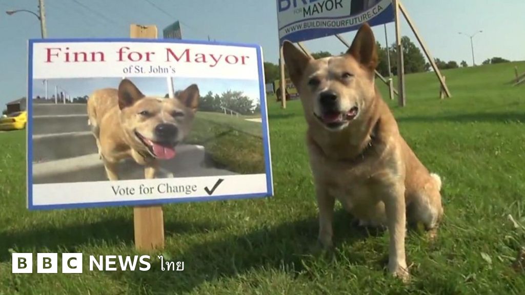 "ฟินน์" สุนัขพันธุ์ ออสเตรเลียน แคทเทิล วัย 5 ปี ประกาศเข้าชิงตำแหน่งนายกเทศมนตรี แห่งเมือง เซนต์ จอห์น ประเทศแคนาดา เสียดสีปัญหาการเก็บกวาดหิมะและถนนเป็นหลุมบ่อ