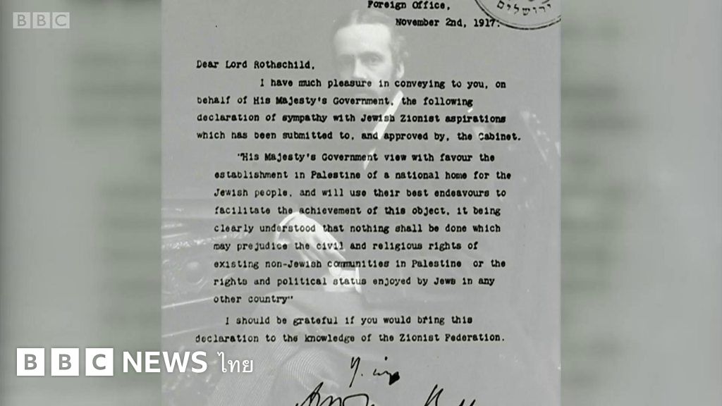 จดหมายนี้ถูกเขียนขึ้นเมื่อ 100 ปีก่อน ระหว่างสงครามโลกครั้งที่ 1 โดยมีใจความระบุว่า รัฐบาลอังกฤษสนับสนุนให้ตั้งรัฐของชาวยิวในดินแดนปาเลสไตน์