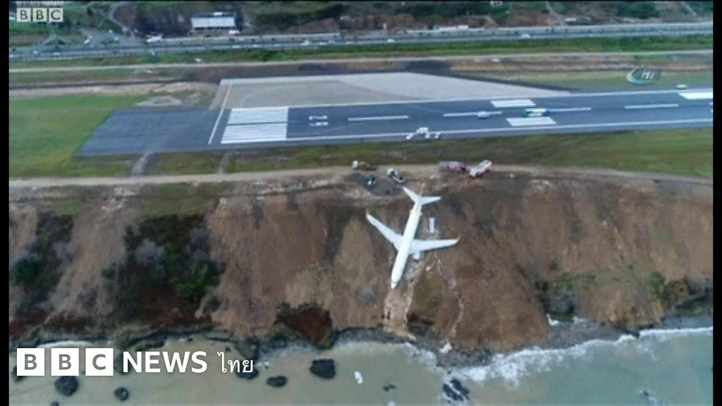 เครื่องบินโดยสารลำหนึ่งไถลออกนอกทางขึ้นลงเครื่องบินที่สนามบินในตุรกี และตกลงไปติดอยู่ที่หน้าผาที่ลาดชันริมทะเล ผู้โดยสารและลูกเรือ 168 คนบนเครื่องปลอดภัย