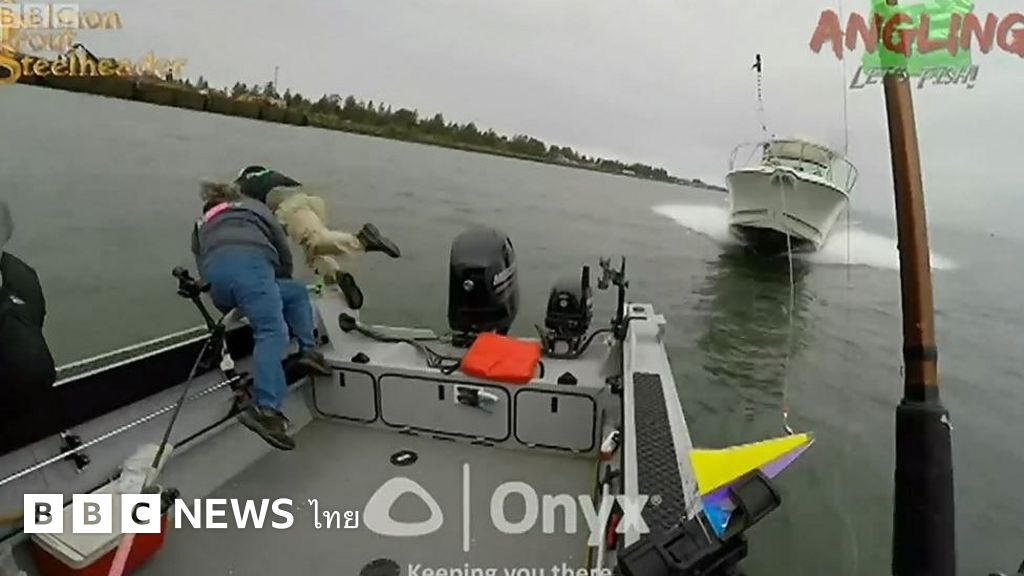 คนบนเรือกระโดดลงน้ำรอดจากการถูกเรืออีกลำพุ่งชนหวุดหวิด