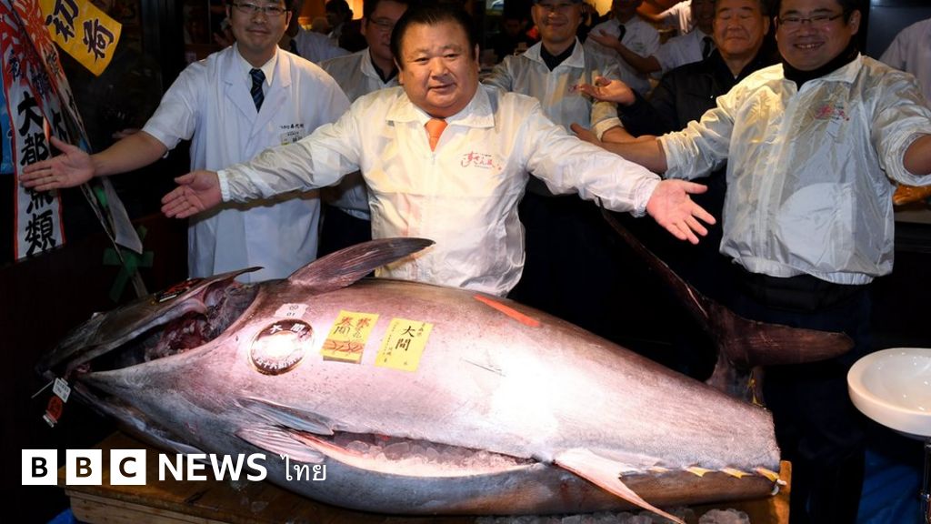 ปลาทูน่าครีบน้ำเงิน ดังภาพข้างบนมีผู้ประมูลไปด้วยราคา 74.2 ล้านเยน หรือมากกว่า 18 ล้านบาทในการประมูลปีที่แล้ว แต่ก็ยังต่ำกว่าราคาของปลาทูน่าตัวมหึมาในปี 2013 ที่มีผู้ประมูลไปด้วยราคาสูงถึง 51 ล้านบาท
