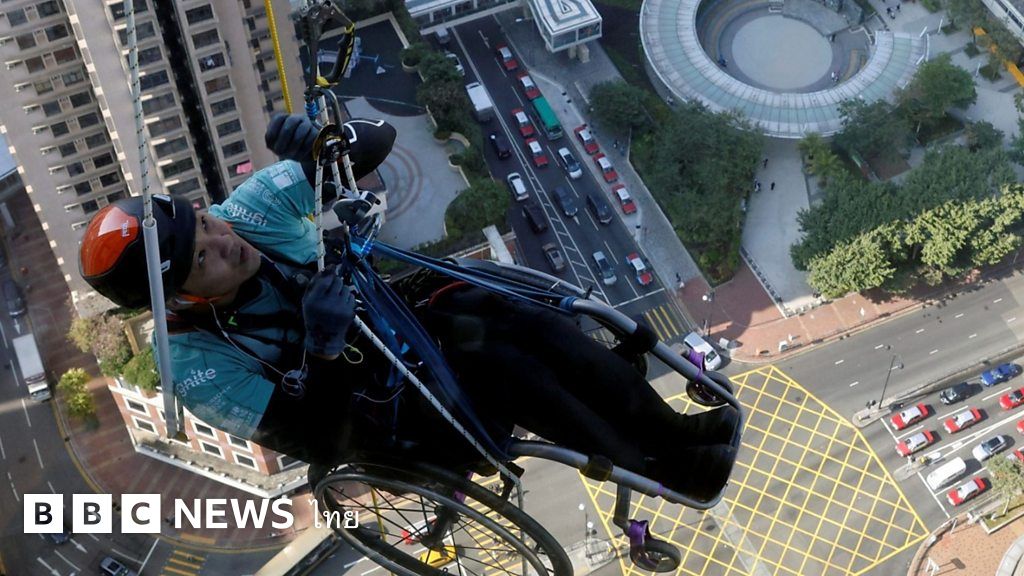 อดีตแชมป์ปีนเขาเอเชียนั่งรถเข็นปีนตึกระฟ้าในฮ่องกงระดมเงินเพื่อการกุศล