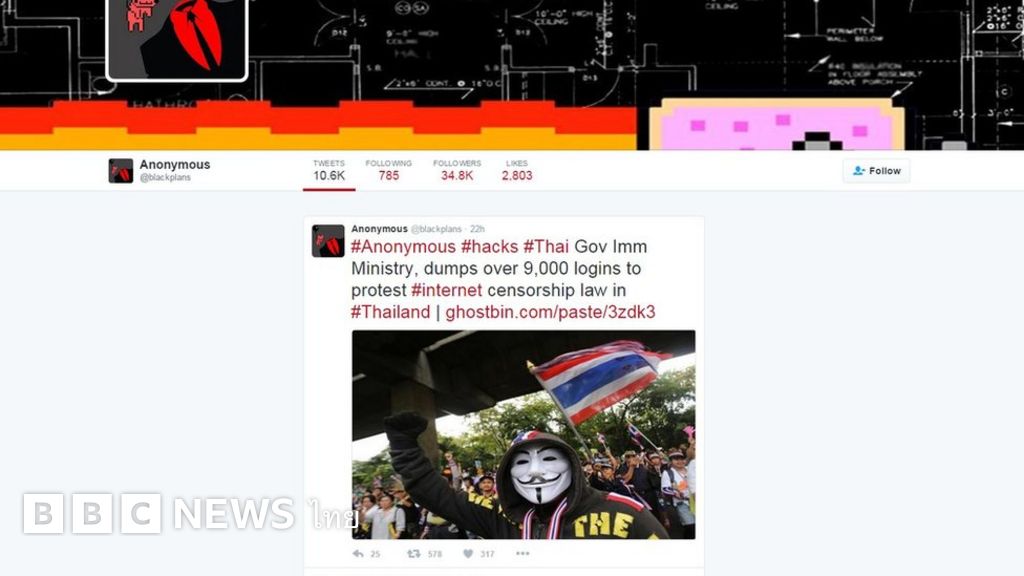 กลุ่ม Anonymous ได้โพสต์ข้อความผ่านบัญชีทวิตเตอร์ @blackplans อ้างว่าสามารถเจาะเข้าระบบของสำนักงานตรวจคนเข้าเมืองสำเร็จและได้ข้อมูลรายชื่อล็อกอินของเจ้าหน้าที่ผู้ใช้งานเว็บไซต์สำนักงานตรวจคนเข้าเมืองกว่า 9,000 รายชื่อ เพื่อประท้วงกฎหมายเซ็นเซอร์ทางอินเทอร์เน็ต