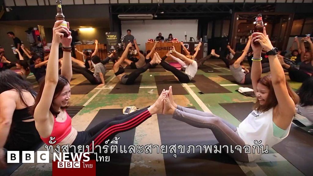 บีบีซีไทย พาไปดูบรรยากาศการเล่นโยคะเบียร์ในเมืองไทย ซึ่งนับว่าเป็นครั้งแรกๆ ที่มีการเปิดคลาสสอนแบบนี้ขึ้น