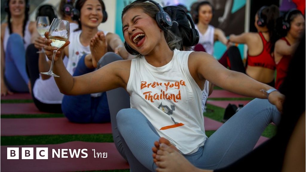 เหล่าคนรักโยคะและไวน์ต่างไปร่วมกิจกรรม "โยคะไวน์" ซึ่งจัดขึ้นบริเวณบาร์ชั้นดาดฟ้าของโรงแรมแห่งหนึ่งในย่านสุขุมวิทเมื่อวานนี้ (2 ธ.ค.) นับเป็นรูปแบบของการออกกำลังกายแนวใหม่ที่กำลังได้รับความสนใจจากทั้งชาวไทยและชาวต่างชาติ