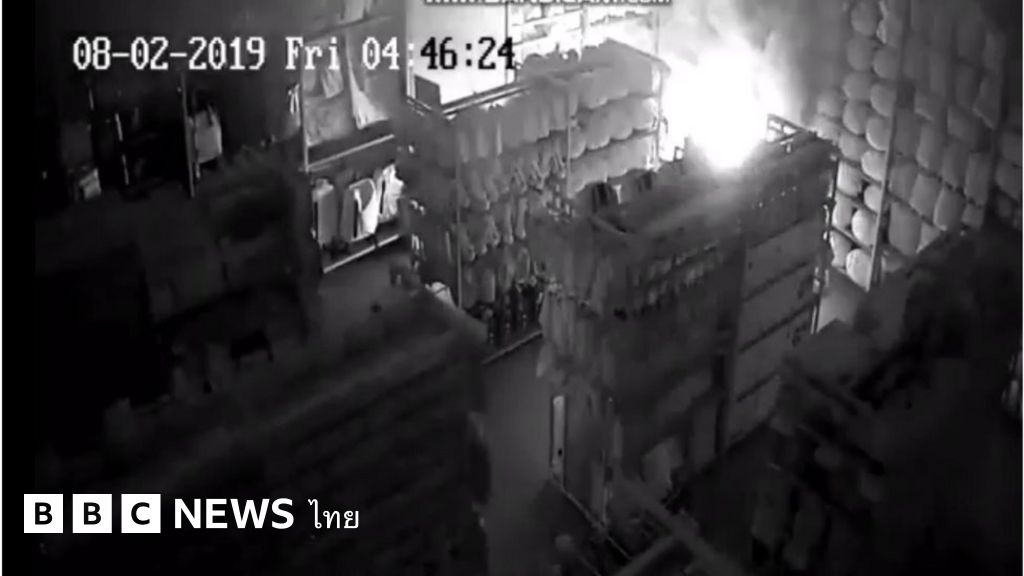 เวลาประมาณ 04.45 น. ของวันที่ 2 ส.ค. กล้องวงจรปิดบันทึกภาพเหตุคล้ายระเบิด มีเปลวเพลิงวาบขึ้นในร้านตรงจุดที่ชายคนดังกล่าววางตุ๊กตาไว้ มีควันลอยคลุ้ง ทำให้สปริงเกอร์ทำงาน มีน้ำออกมาดับไฟ