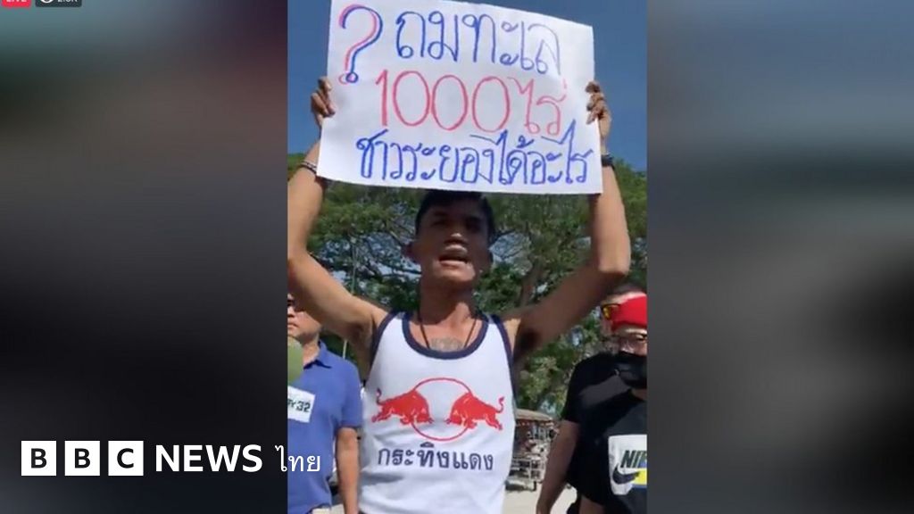 ไมค์ ระยอง : ตร.แสดงหมายจับขณะ "ภาณุพงศ์ จาดนอก" ถือป้ายประท้วงโครงการถมทะเลที่ ครม. สัญจร จ.ระยอง