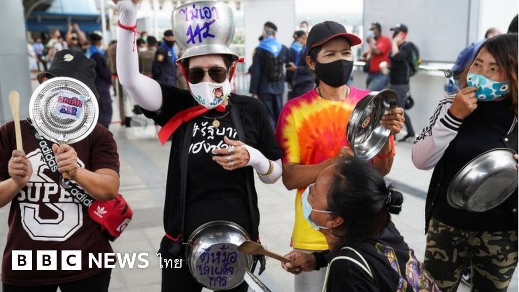 ผู้ชุมนุมเคาะหม้อ-กระทะ เสียงดังสนั่น ซึ่งเป็นวิธีที่ชาวเมียนมากำลังใช้เพื่อประท้วงที่กองทัพเมียนมาเข้ายึดอำนาจจากรัฐบาลพลเรือนเมื่อวันที่ 1 ก.พ ขณะที่เจ้าหน้าที่นำรถเครื่องขยายเสียงมาเปิดประกาศ พ.ร.ก.ฉุกเฉินฯ