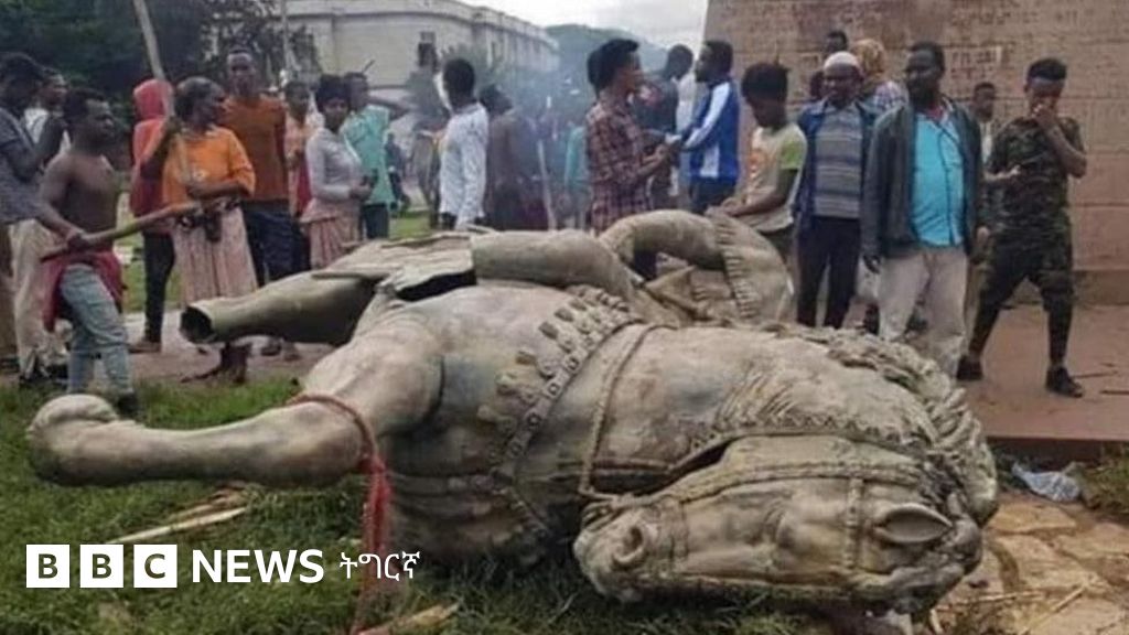ኣብ ኢትዮጵያ ብሞት ውሩይ ስነጥበባዊ ሃጫሉ ሁንዴሳ ዝተቖጥዑ ሰልፈኛታት፡ ንሓወልቲ ራእሲ መኮነን ወልደ ሚካኤል ኣፍሪሰሞ።